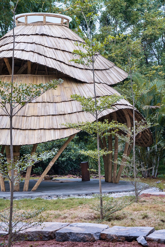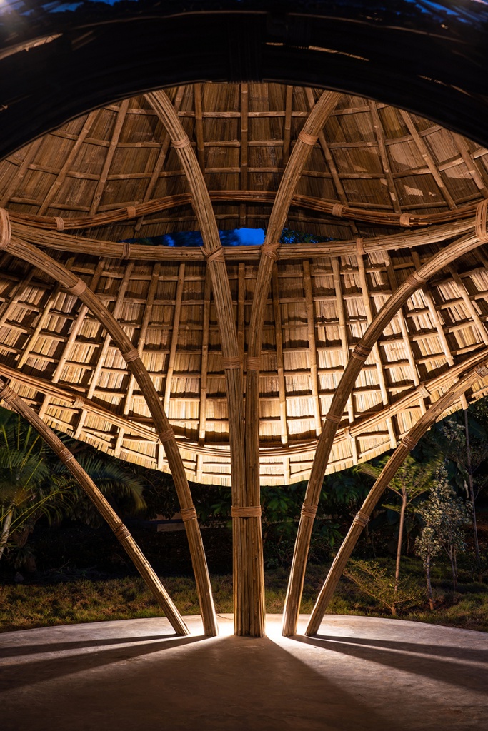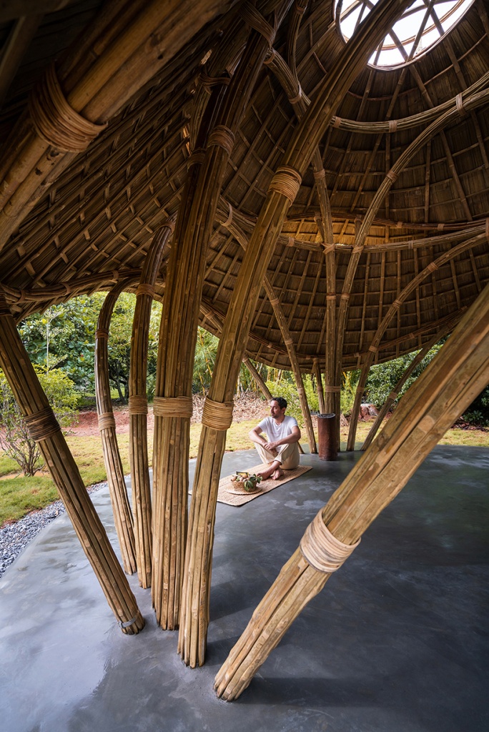 Like its many other natural architectural projects, Studio Aro’s Meditation Gazebo is built from bamboo harvested and treated by the team itself to ensure a high standard of quality and longevity. The team treats mature bamboo with naturally occurring salts to preserve it and increase its durability by several decades, making its use viable in permanent structures.