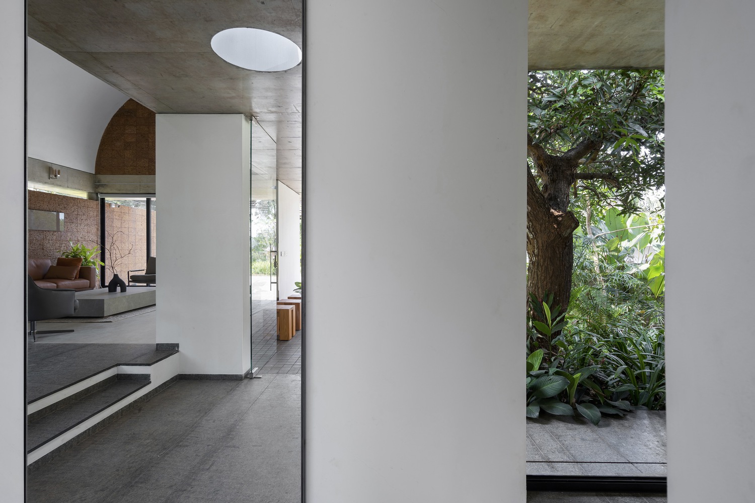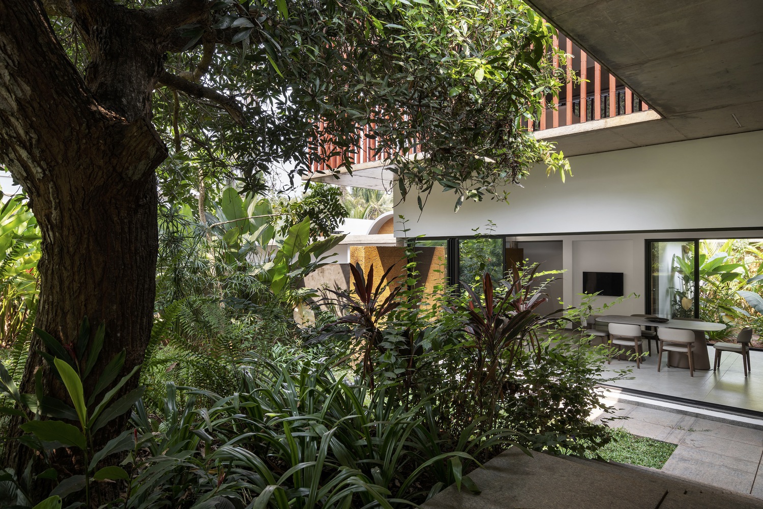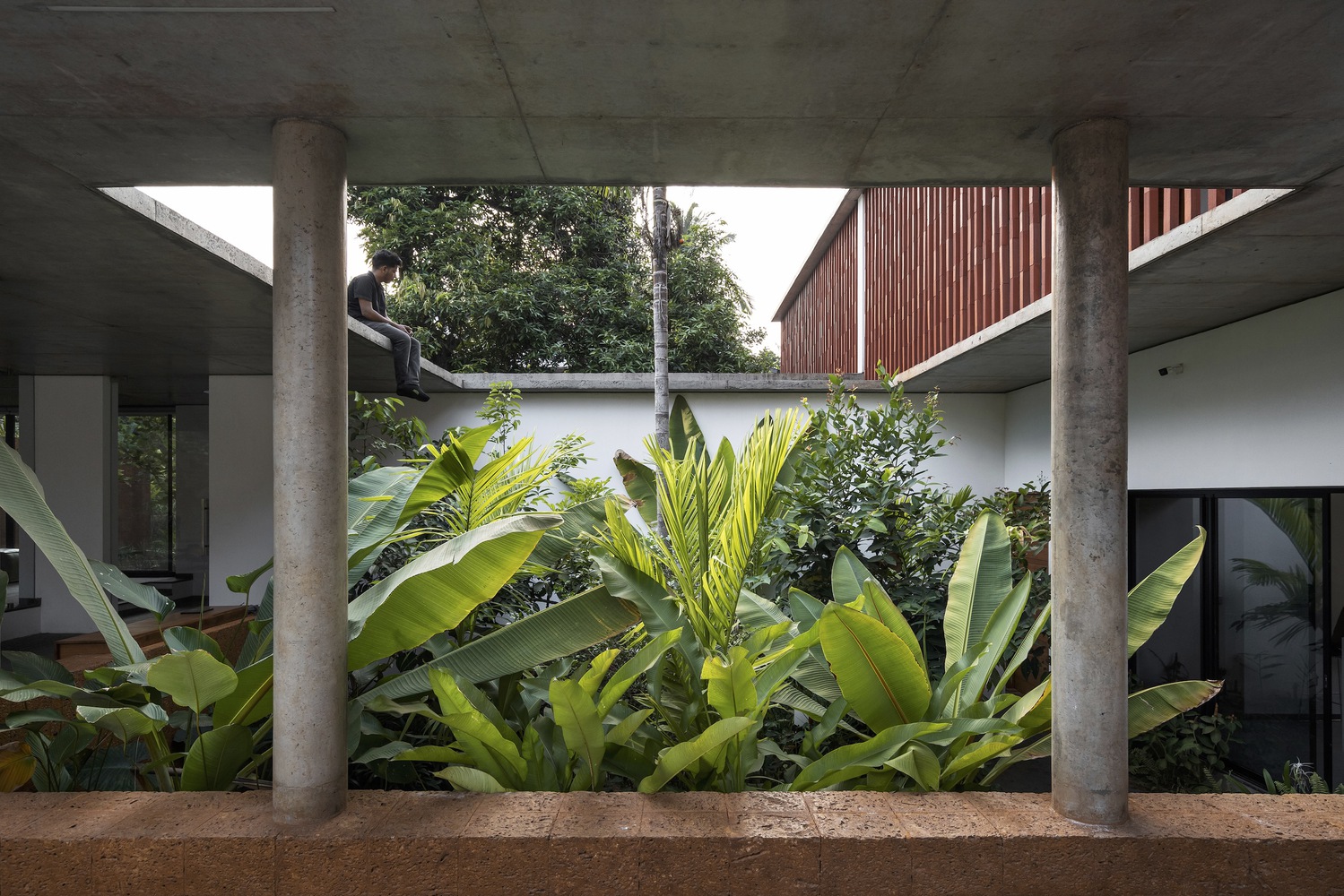 The Stoic Wall Residence’ harmoniously combines indoor and outdoor living. Situated in Kadirur, Kerala, amidst its scorching heat, incessant monsoon rains, and lush vegetation, this home exemplifies the art of harmonizing with nature. Courtyards, landscape pockets, and biophilic features effortlessly integrate with the house, transforming the act of dwelling into a holistic experience of well-being.