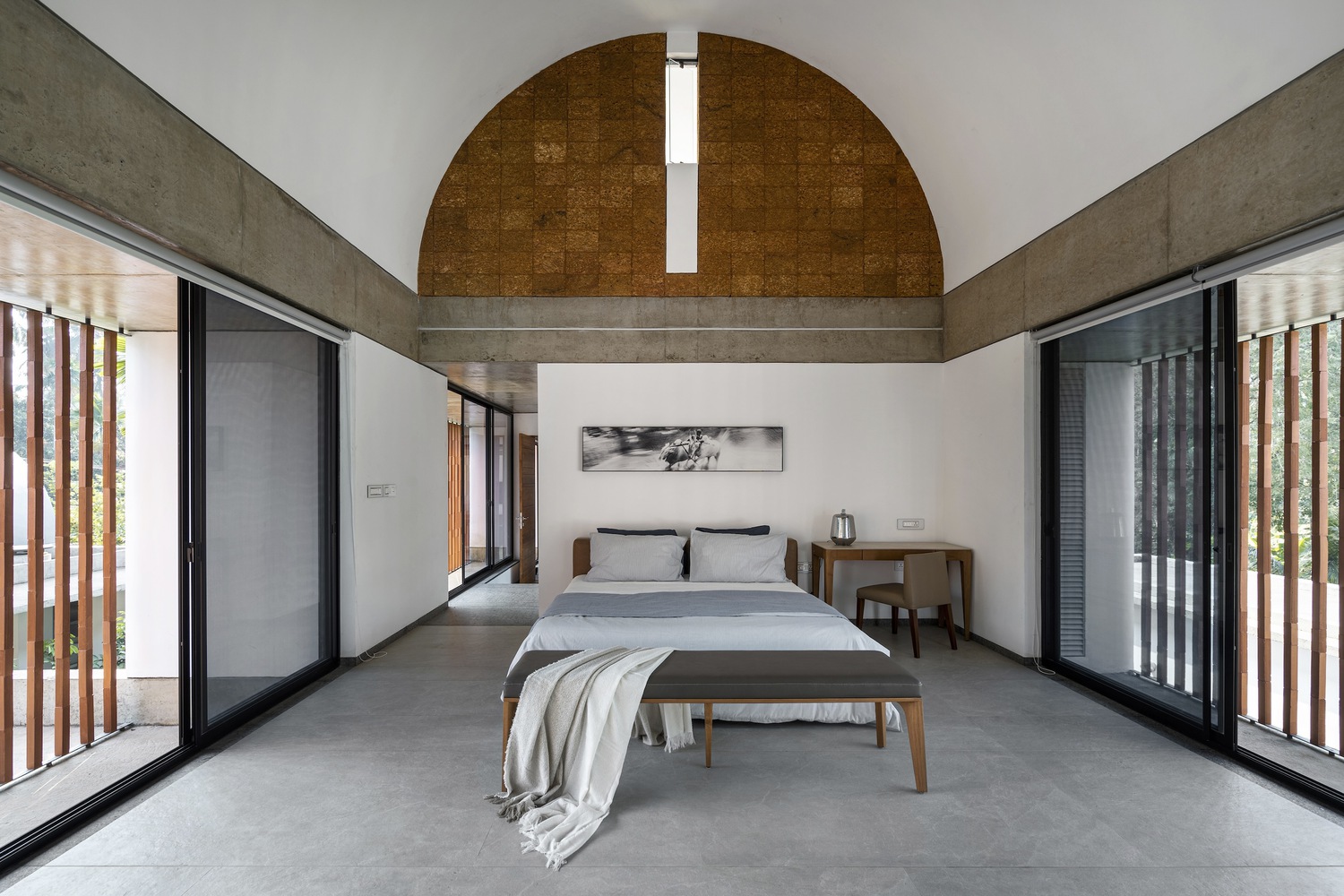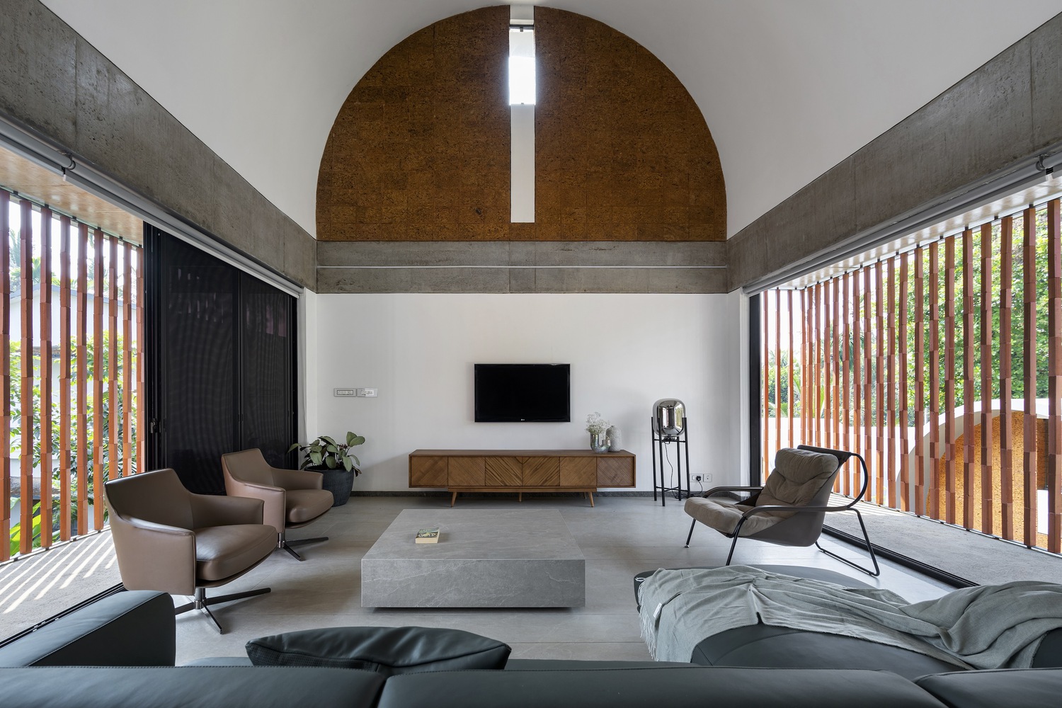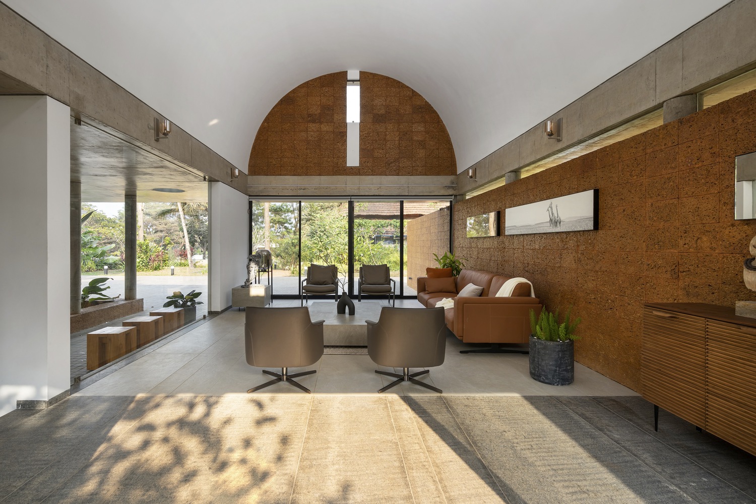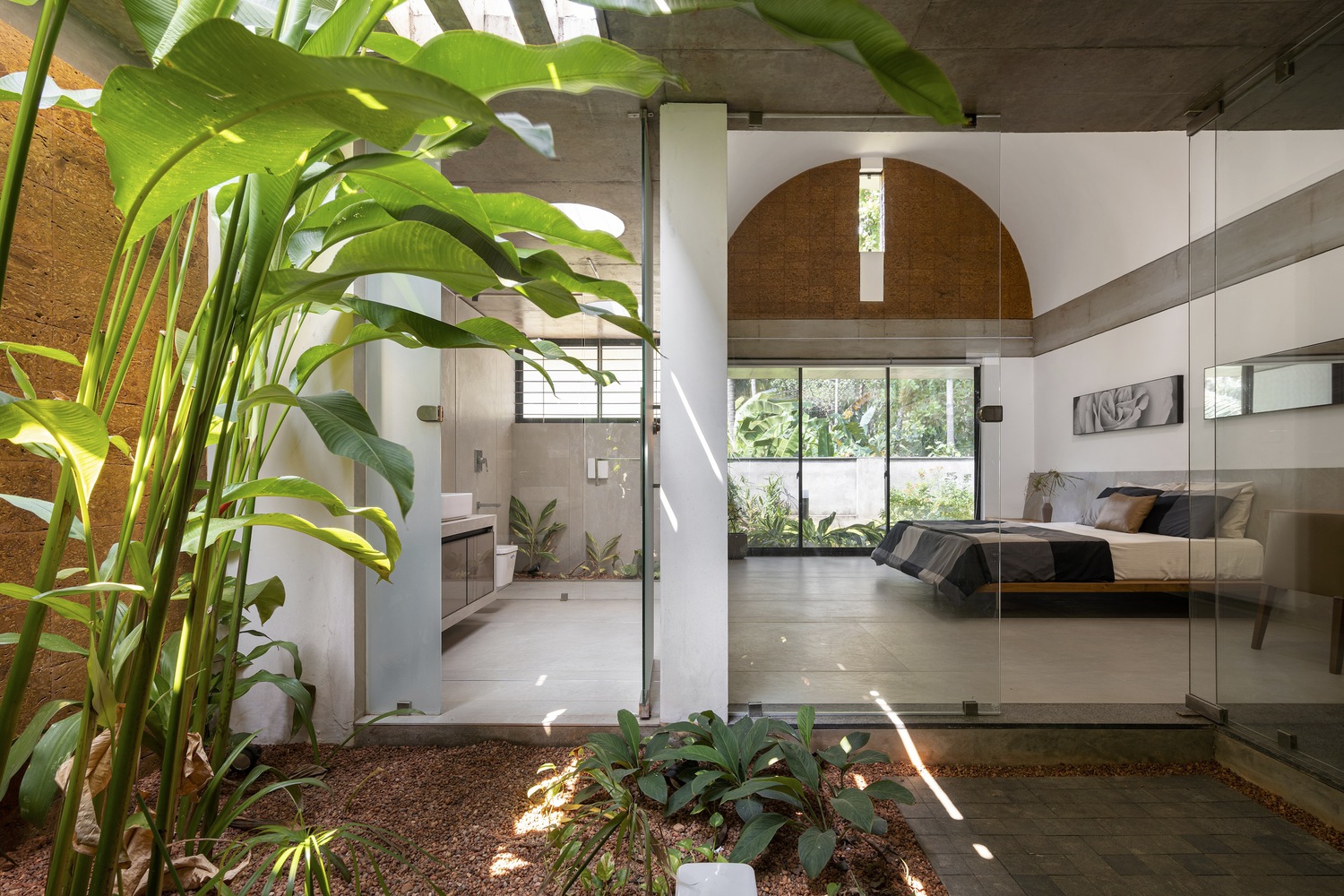 The Stoic Wall Residence’ harmoniously combines indoor and outdoor living. Situated in Kadirur, Kerala, amidst its scorching heat, incessant monsoon rains, and lush vegetation, this home exemplifies the art of harmonizing with nature. Courtyards, landscape pockets, and biophilic features effortlessly integrate with the house, transforming the act of dwelling into a holistic experience of well-being.
